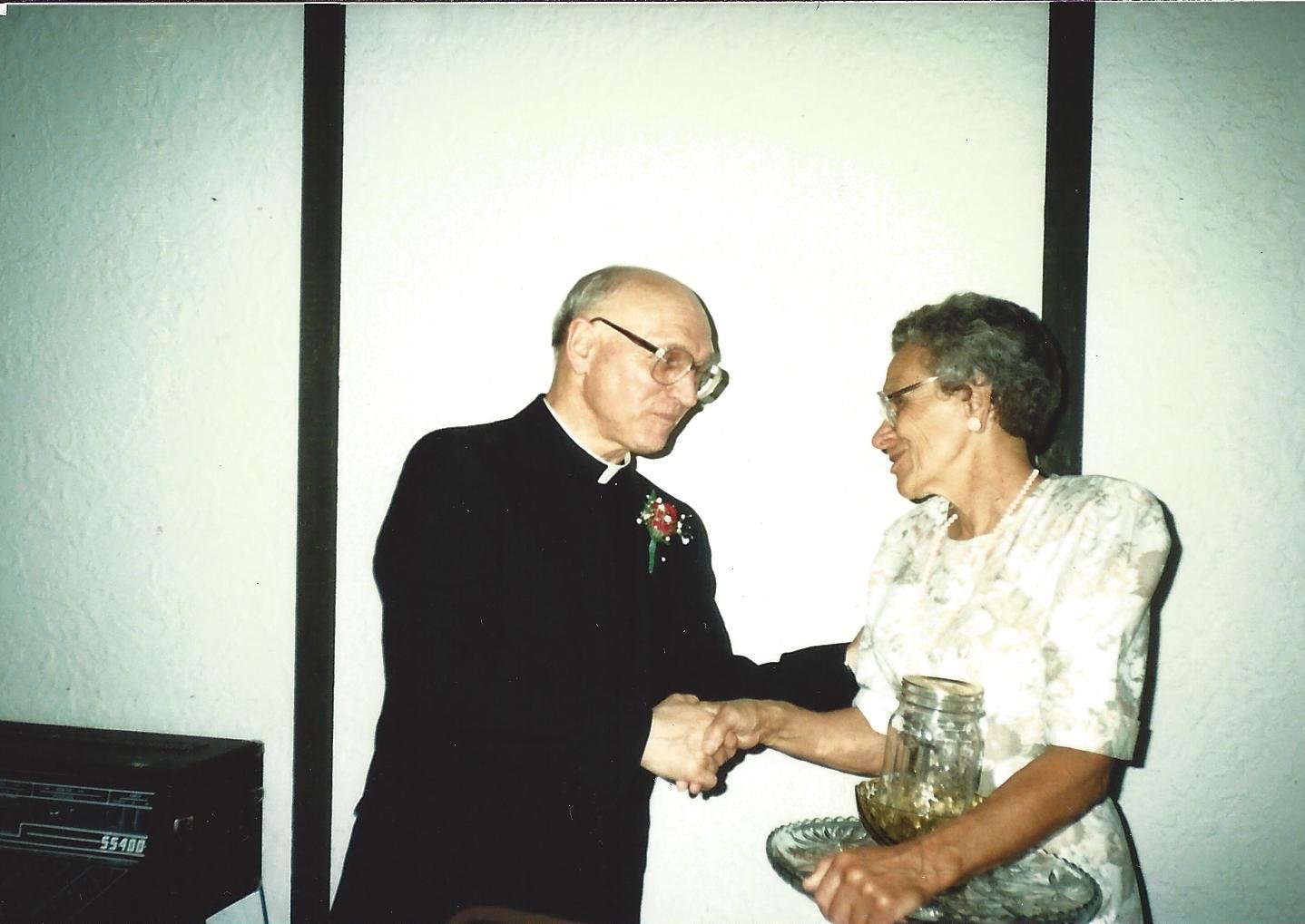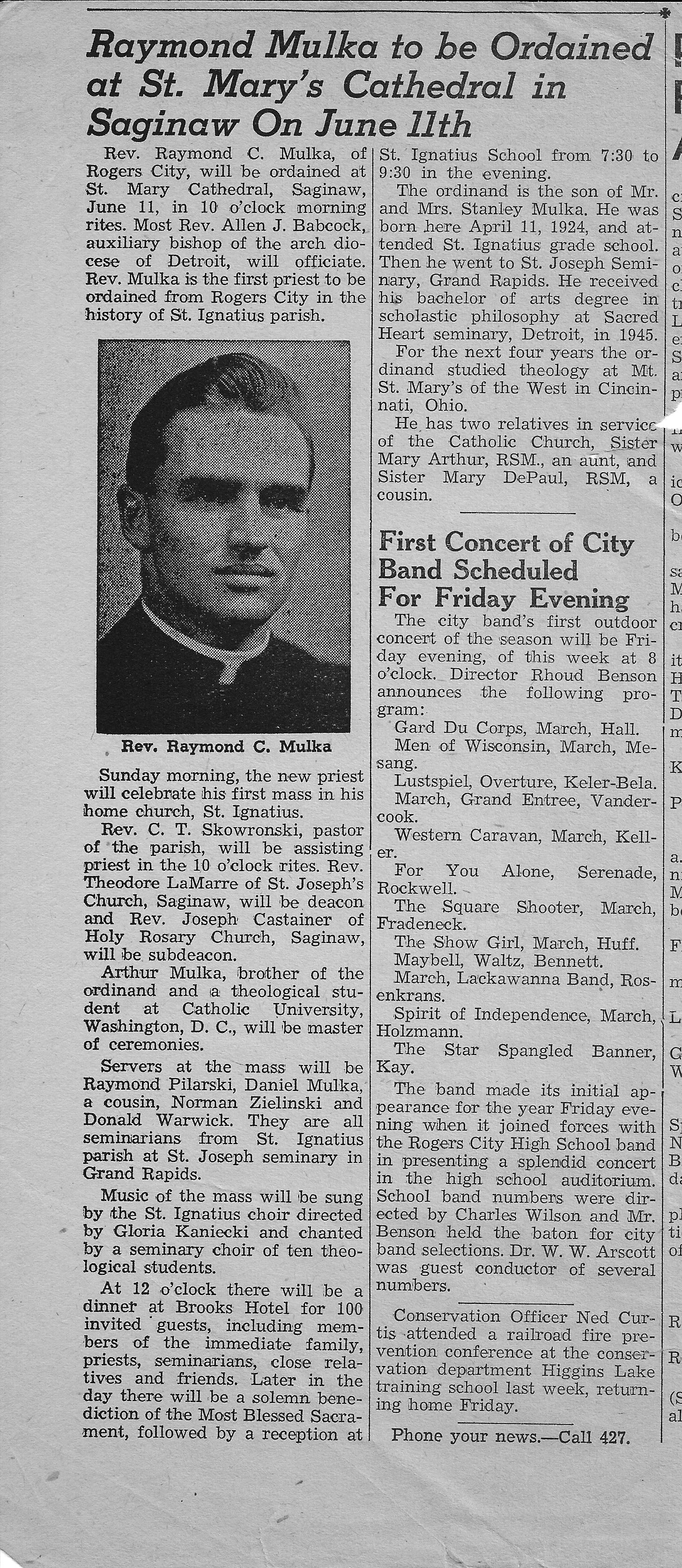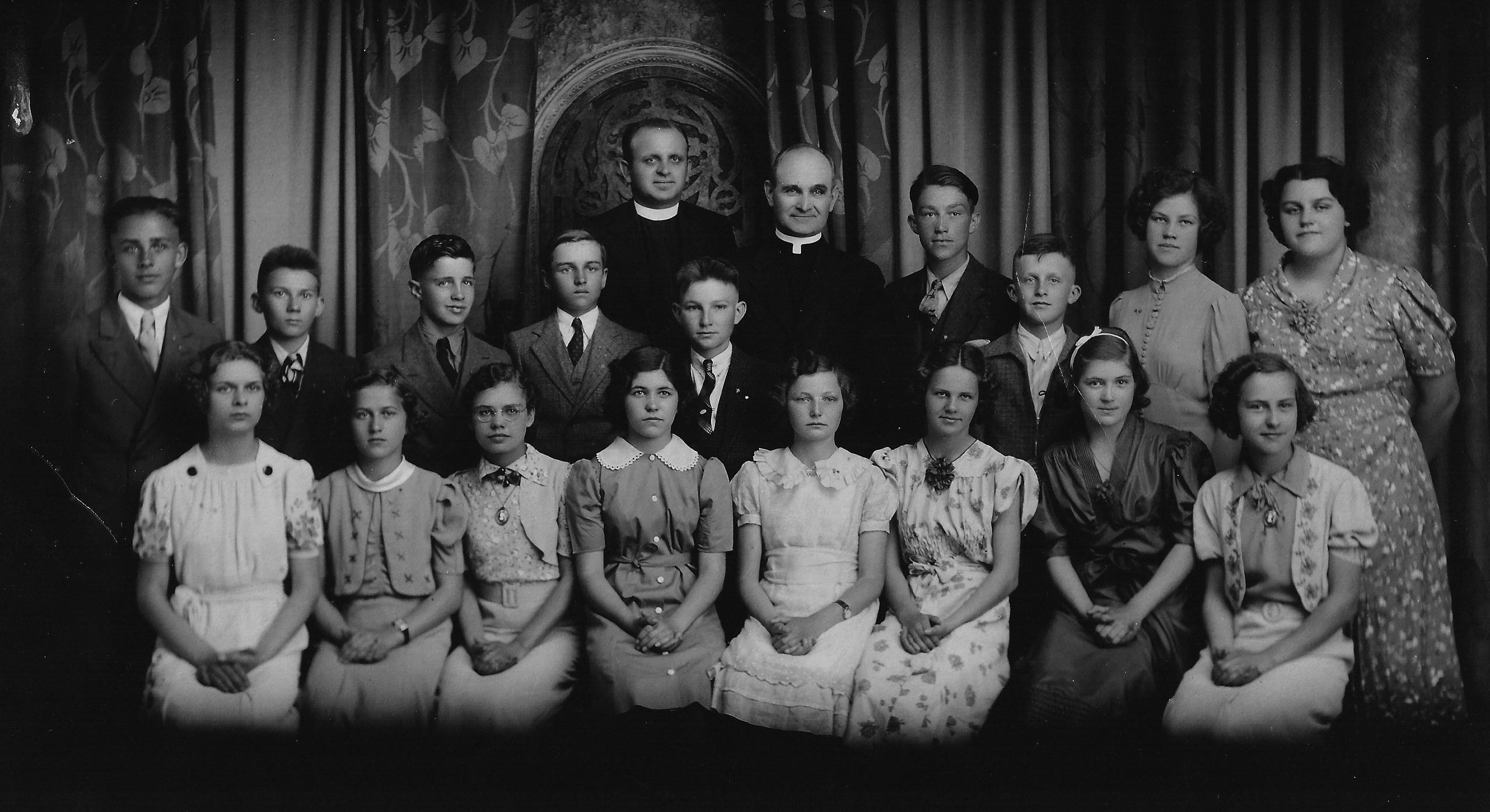 Some old photographs belonging to Father Raymond Mulka which were shared at the Mulka Family reunion held on August 5th 2017. Initially we thought it would be a good idea to scan the pictures people expressed an interest in having, but several asked to have copies of all of them. All the pictures have therefore been scanned and are available to download from here by clicking on the green download icon beneath each thumbnail. (Please note: If you choose the download option available when viewing the picture you will receive a smaller, lower resolution version that is less desirable). There are a total of 44 pictures spread over three pages. The pictures are more or less in the same order as they were in the book, but hopefully you can find the images you are interested in. They were scanned at a resolution of 300 dpi to keep the file sizes of the larger photos to a manageable level. Be aware that some photos were very small so printing them larger than the original size will reduce the quality.